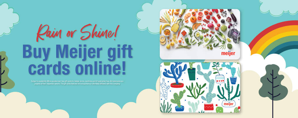 Gift Card Number PIN. No rainchecks or substitutions. To learn more about Meijer Gift Cards please see Gift Cards.